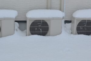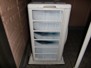 室外機は前後左右から空気を吸って吐き出すため、風の通り道がふさがれていると熱交換がうまくできず、霜が付きやすくなります。